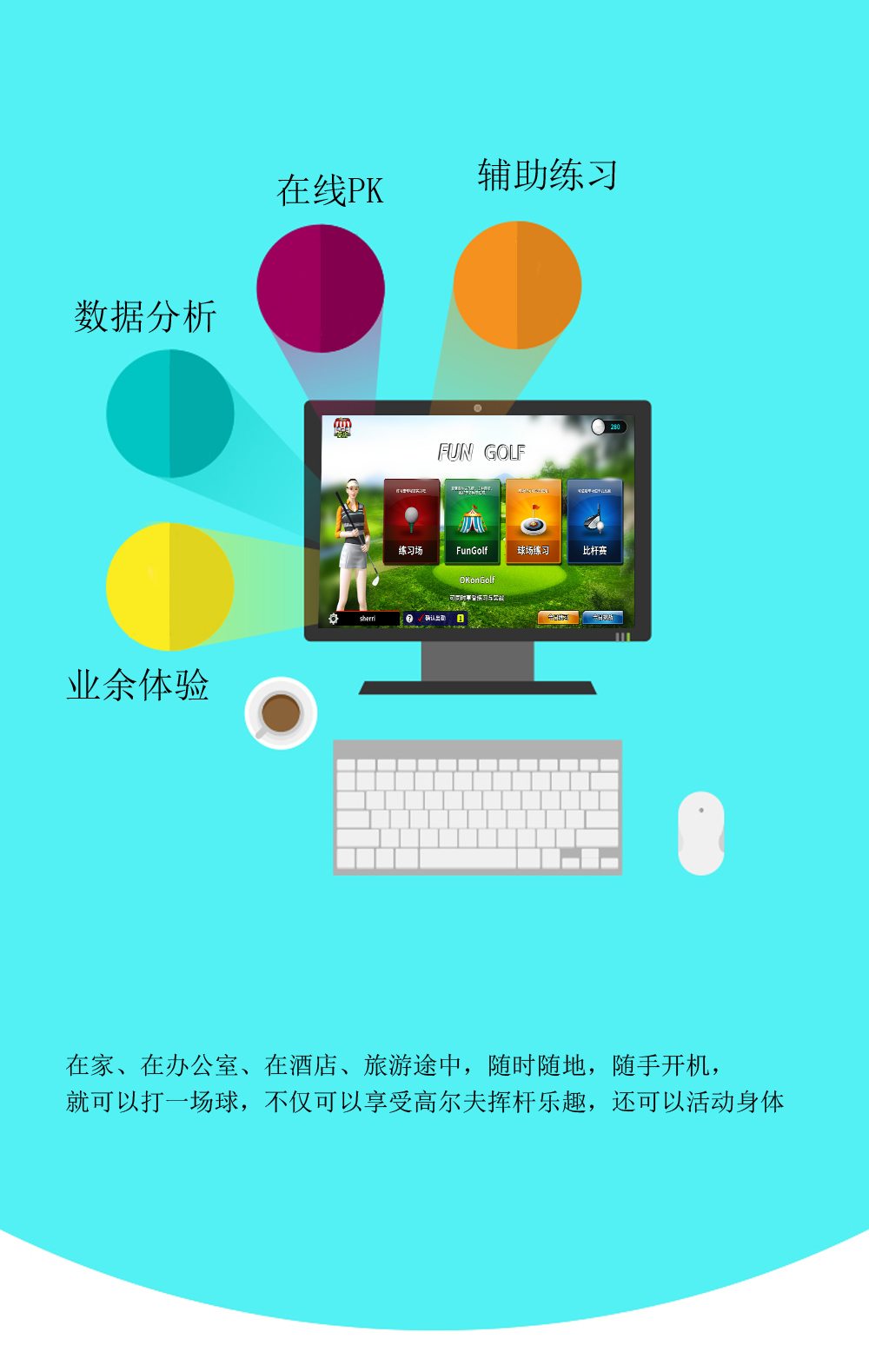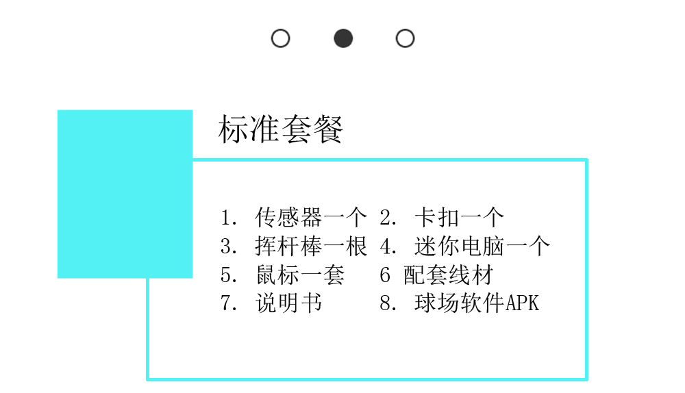 Fungolf全套產(chǎn)品包含:傳感器,高爾夫訓(xùn)練揮桿棒,球桿卡套,傳感器充電線,mini 電腦,天線,mini電腦充電器,有線鼠標(biāo),HDMI線,產(chǎn)品說明書。