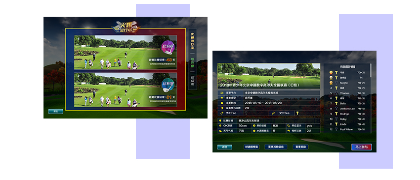 定期舉辦的官方賽事等模塊,體驗(yàn)一站式互聯(lián)網(wǎng)高爾夫