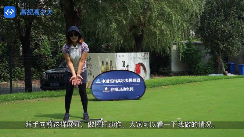整個(gè)推桿平面做好的情況下,通常會(huì)把球推擊到比較理想的位置,大家可能都聽說過在推桿過程中需要感受到肩膀移動(dòng)的感覺,在沒有推桿的情況下,雙手向前展開,做揮桿動(dòng)作。