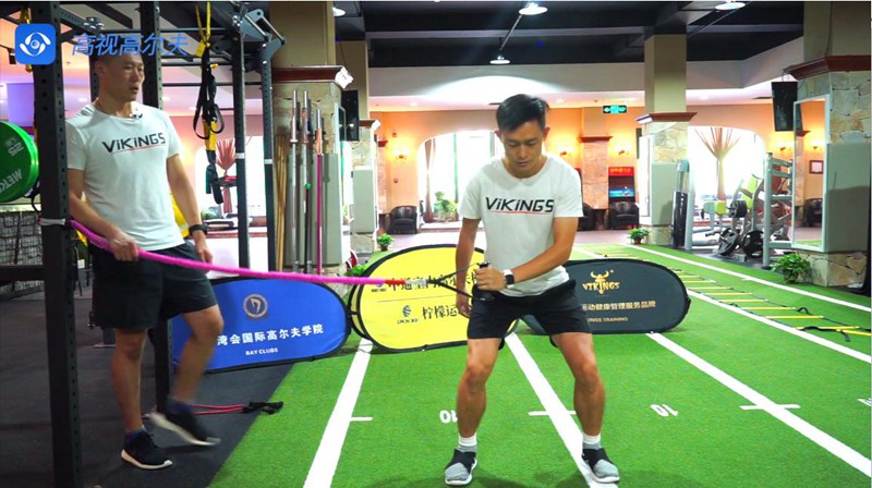 室內(nèi)高爾夫與VIKINGS專項(xiàng)體能教練合作錄制體能教學(xué)視頻。