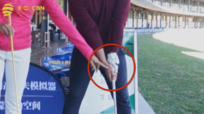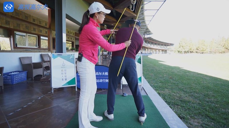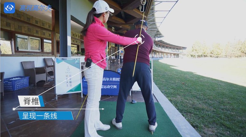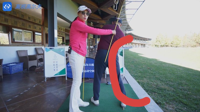 有些學(xué)員的錯(cuò)誤是右肩低,右胯卻提上去了。站姿呈現(xiàn)C型,這樣身體很難自然地圍繞軸心旋轉(zhuǎn)。
