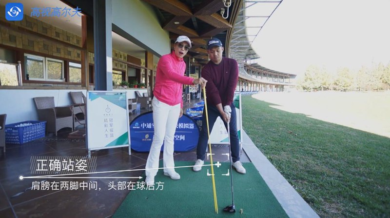 本節(jié)高爾夫教學(xué)視頻閆盼盼老師分享一號(hào)木的站姿。