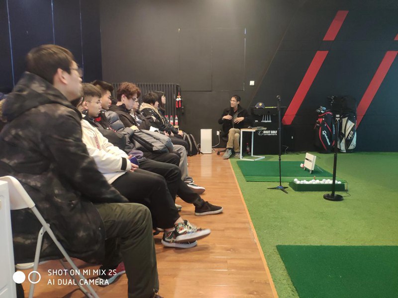 2018年12月19日,北京中通數(shù)字高爾夫負(fù)責(zé)人陳總在檸檬運(yùn)動(dòng)空間北土城店為北京體育大學(xué)體育工程學(xué)院智能體育專業(yè)的21名同學(xué)分享智能硬件。