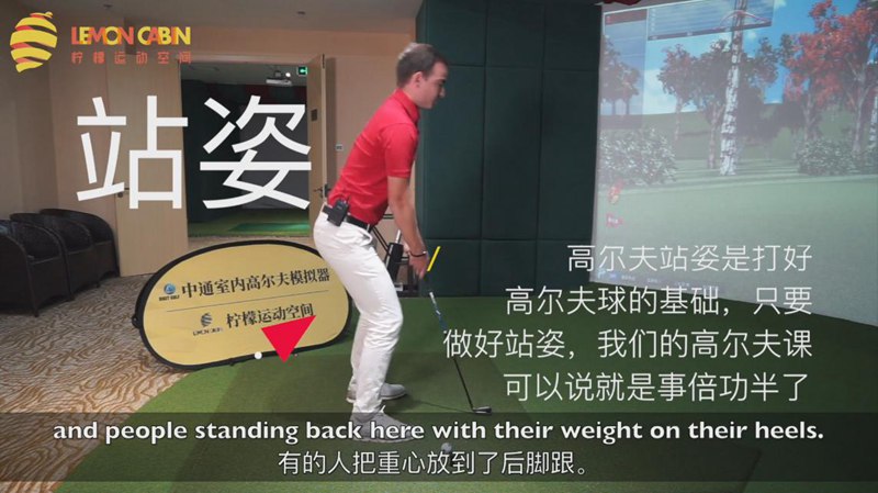 應(yīng)該把重心放到腳掌,后背挺直,雙膝微曲,這是標準的高爾夫站姿。
