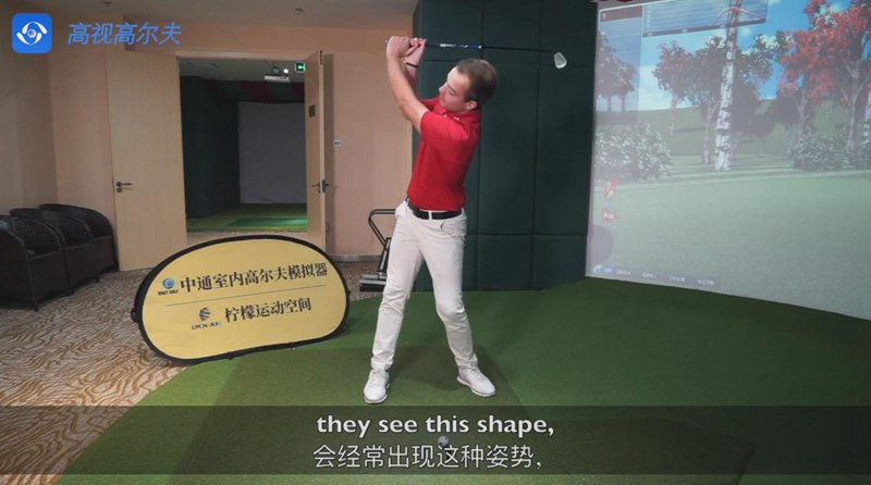 另外,很多人上桿到頂點后身體重心還保持在左側(cè),所以會出現(xiàn)“倒C”的姿勢,這樣在下桿時就會出現(xiàn)甩桿,擊球時很容易出現(xiàn)問題。