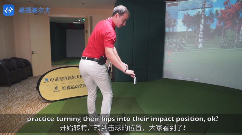 室內(nèi)高爾夫與北京一桿進洞高爾夫?qū)W院Matt Weir老師合作錄制教學(xué)視頻。