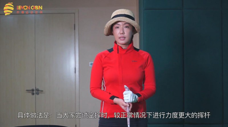 教學(xué)視頻中,老師嘗試不同力度的揮桿,從空揮球桿擺動(dòng)的聲音中就可以感覺(jué)到不同,這里要注意的是,盡量不要去特別發(fā)力擊球,但要盡量提升揮桿速度,開(kāi)球距離如果理想,就可以嘗試進(jìn)行兩桿上果嶺。