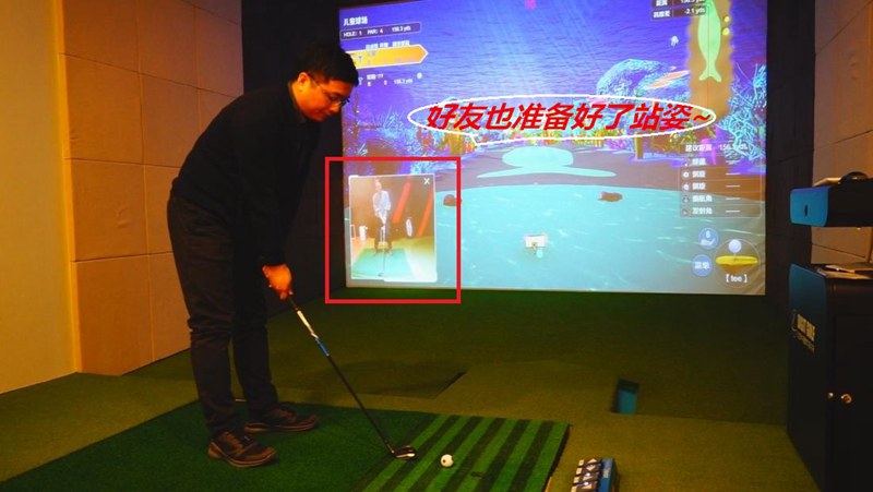 在對(duì)戰(zhàn)過程中,可實(shí)時(shí)獲取球友們的打球動(dòng)態(tài),包括揮桿視頻,打球進(jìn)展,實(shí)現(xiàn)“面對(duì)面”PK,打球時(shí)在屏幕的左下角可看到對(duì)戰(zhàn)好友的揮桿,下圖中紅色方框中即為遠(yuǎn)程好友實(shí)時(shí)揮桿的展現(xiàn)。