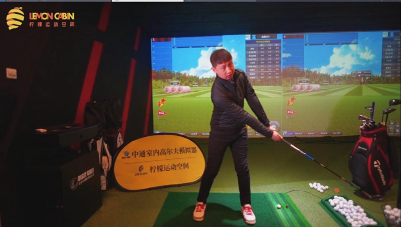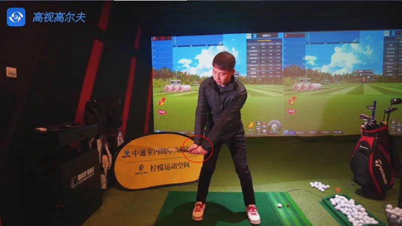 技巧講解完畢后,王碩老師在北京中通數(shù)字室內(nèi)高爾夫模擬器上進(jìn)行了鐘擺揮桿的演示,可以看到揮桿結(jié)束后在模擬器屏幕右上角有詳細(xì)的揮桿數(shù)據(jù),并且可以看到自己揮桿的視頻回放,容易進(jìn)行動(dòng)作分析,幫助我們更好的練習(xí)揮桿。