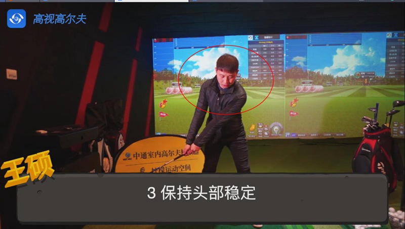 第三點(diǎn)是在揮桿過(guò)程中頭部保持穩(wěn)定,不能跟著球桿晃動(dòng)。