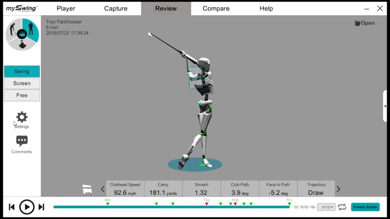 它可以在室內(nèi)及室外使用,是一款沒(méi)有場(chǎng)地限制的高爾夫全身動(dòng)捕工具,系統(tǒng)可以將球手揮桿的身體動(dòng)作記錄下來(lái),并給出精確的數(shù)據(jù),將其與技術(shù)更高的球手進(jìn)行對(duì)比,從而發(fā)現(xiàn)球手動(dòng)作中的不足之處,并且在之后的揮桿動(dòng)作中加以改進(jìn),形成指導(dǎo)。