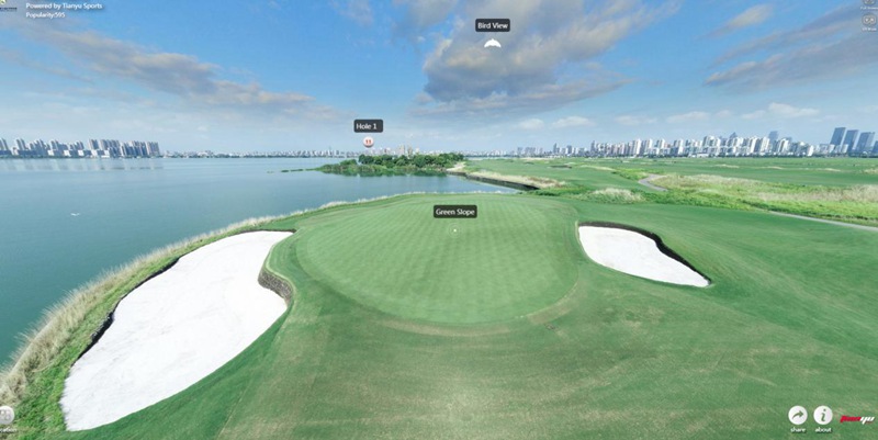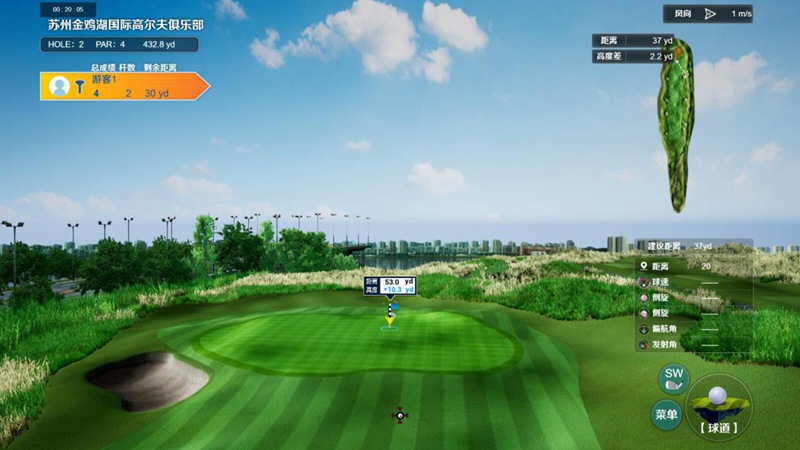 DIGITGOLF模擬器軟件選擇了森林9洞和海濱9洞組成18洞,球道、樹、水、沙坑、果嶺均1:1呈現(xiàn),球場周邊的高樓,橋梁,車輛都做了完美還原,如同身臨其境,毫不夸張的說,你與美麗的蘇州金雞湖球場就只差一套中通數(shù)字高爾夫模擬器了。