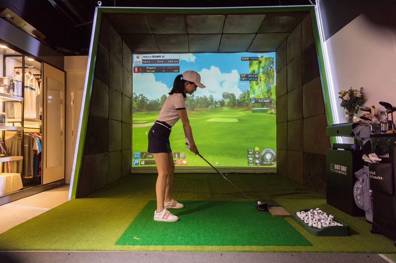 球具店引入高爾夫模擬器,亦可暢打放松休閑娛樂。