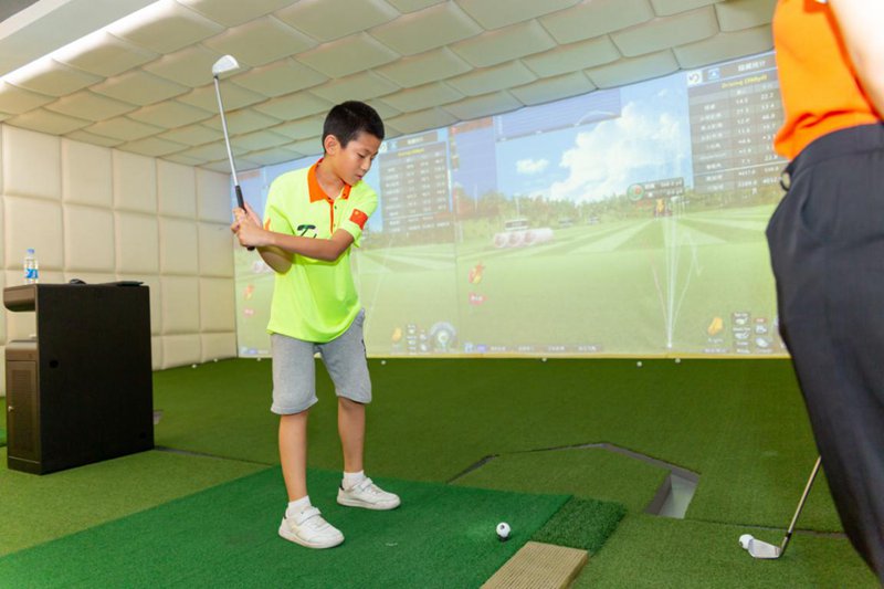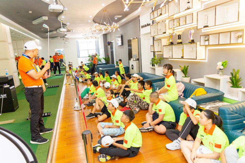 現(xiàn)場進行了簡單的高爾夫教學(xué),小學(xué)員們還體驗了中通室內(nèi)高爾夫模擬器。