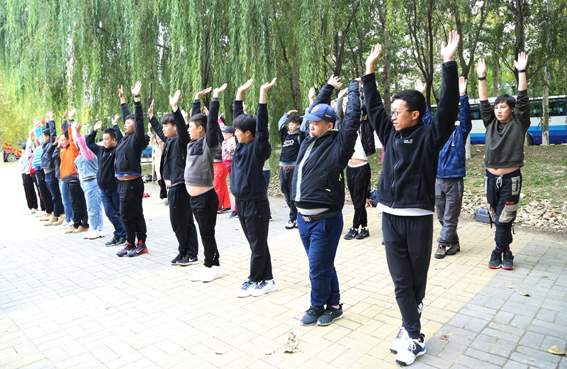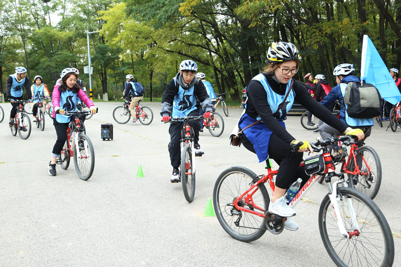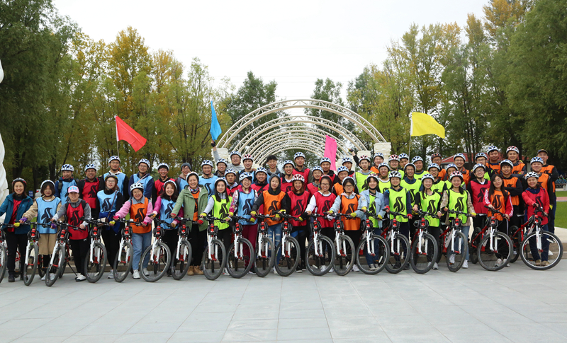 早上,乘大巴到達(dá)延慶媯河森林公園,隨后分組進(jìn)行了熱身運(yùn)動(dòng),為我們的十公里騎行做準(zhǔn)備。