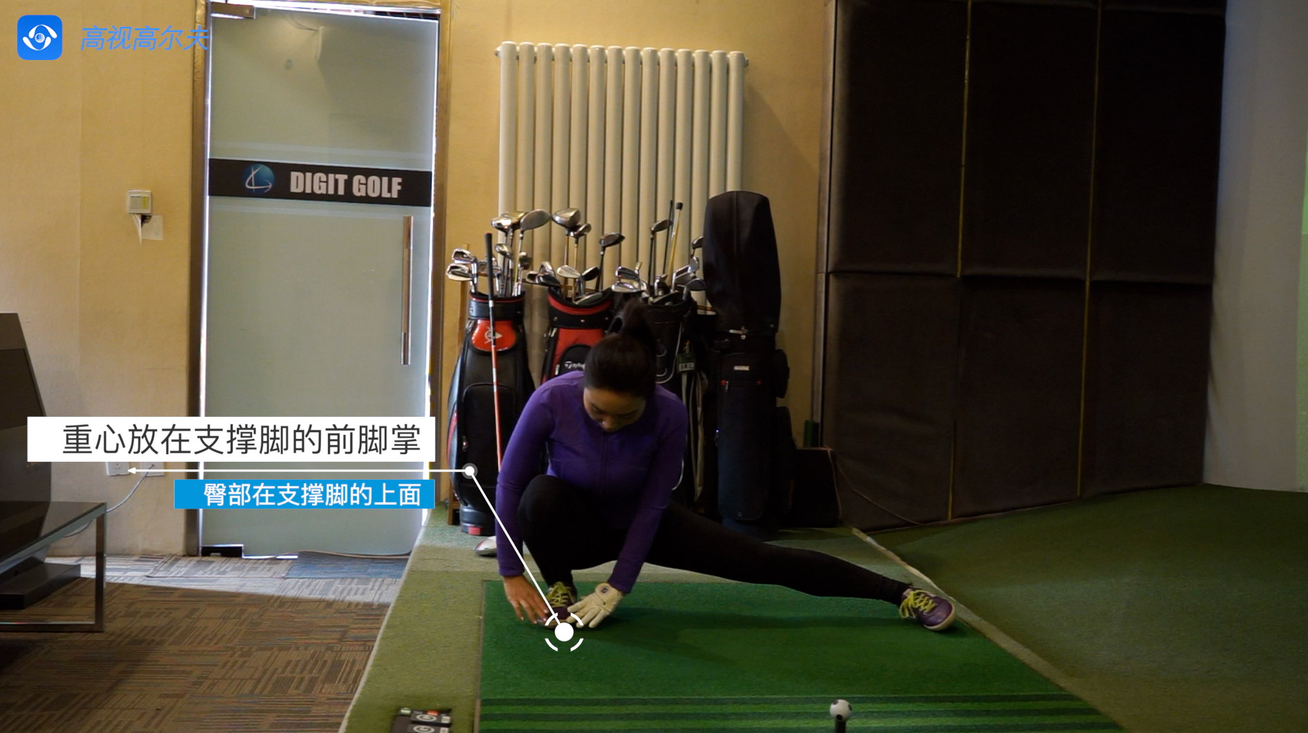 重心放在支撐腳的前腳掌,臀部在支撐腳的上面。