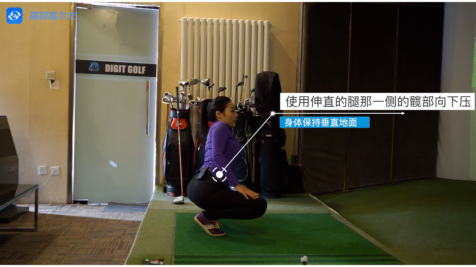用伸直的腿那一側(cè)的髖部向下壓(另一側(cè)也是同樣動作要點)。
