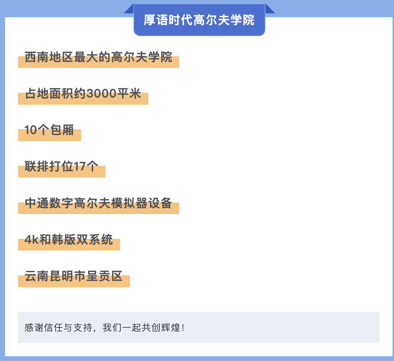 簽約儀式上,北京中通數(shù)字高爾夫創(chuàng)始人李中正先生表示,中通數(shù)字高爾夫作為國內(nèi)首批高爾夫模擬器廠家,十余年的老品牌,擁有高效專業(yè)的技術(shù)及售后團隊等,我們完全有能力服務(wù)好我們的每一個合作伙伴,我們將全方位對厚語時代高爾夫?qū)W院給予支持,共同將厚語時代高爾夫?qū)W院打造成為行業(yè)的標(biāo)桿。