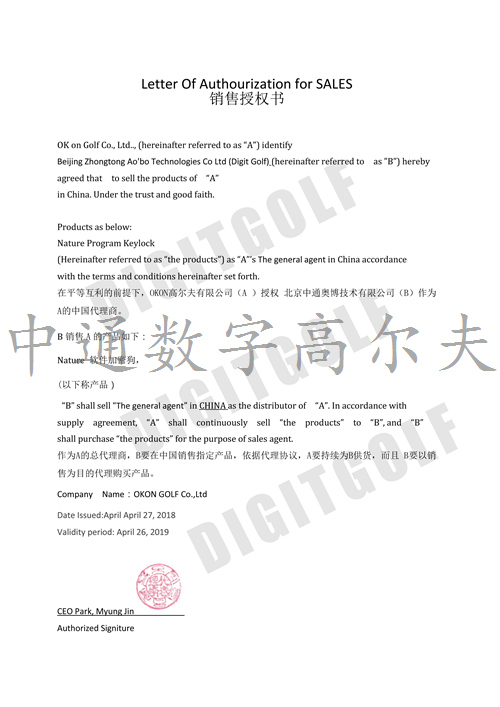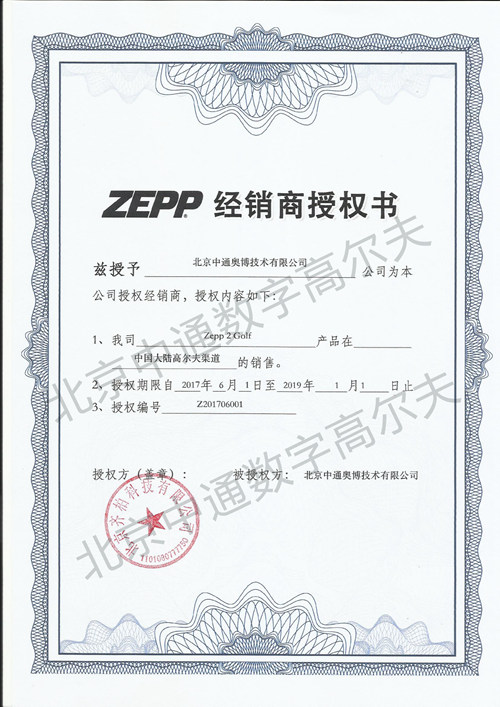 ZEPP經(jīng)銷商授權(quán)書