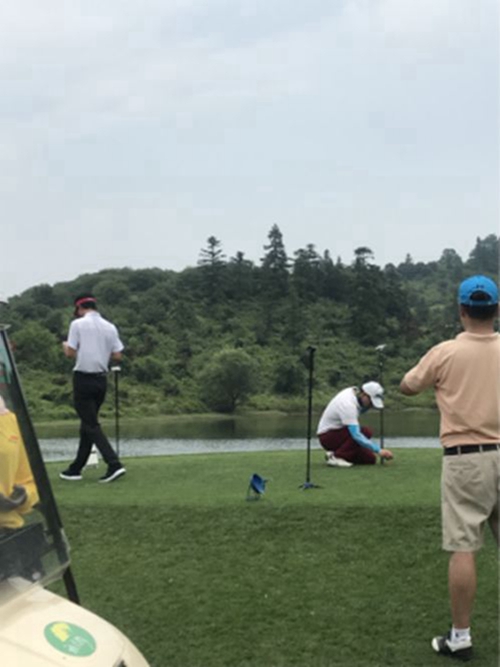 在賽前練習(xí)場(chǎng),北京中通數(shù)字高爾夫還為球員們提供專業(yè)的教學(xué)設(shè)備——FlightScope雷達(dá)X3和WICA訓(xùn)練助理采集擊球數(shù)據(jù)和揮桿視頻,幫助球員們賽前熱身。
